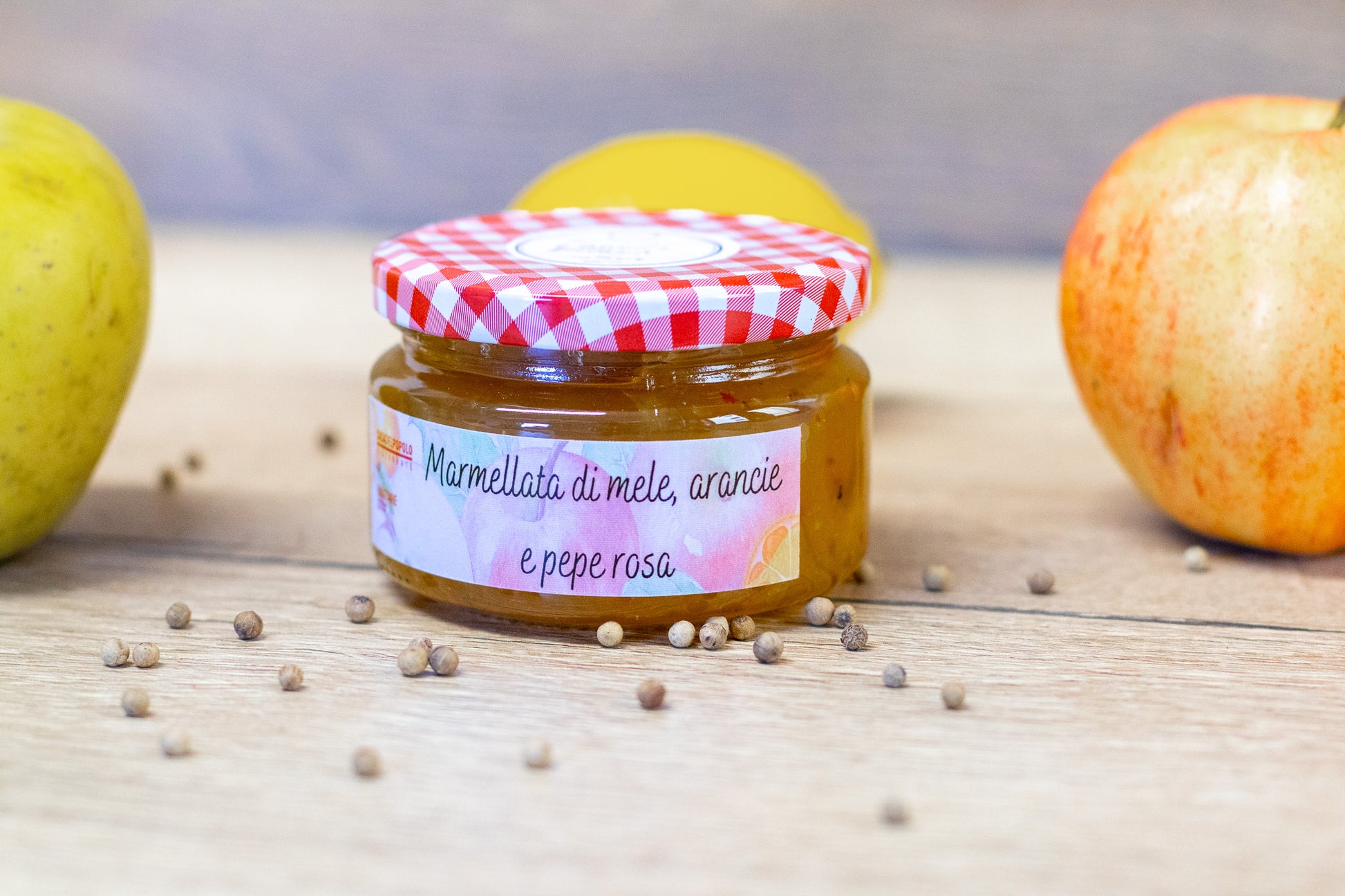 Una confettura dal gusto equilibrato, dove la dolcezza delle mele si incontra con la vivacità delle arance e la nota speziata del pepe rosa. Perfetta su pane, yogurt, formaggi freschi e torte casalinghe.